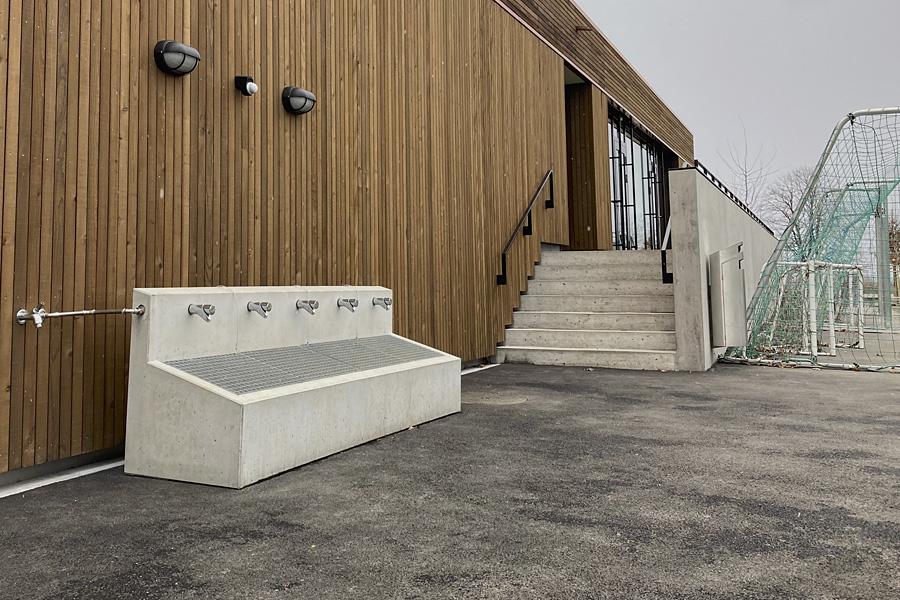 Für das gleichzeitig renovierte Klubhaus des FC Horgen auf dem Allmend-Gelände lieferte Silidur zwei Schuhwaschanlagen. Besonderes Merkmal: Die selbstschliessenden Wasserhähne, die den Wasserausfluss nach einer gewissen Zeit auch bei vergesslichen Spielern stoppen.