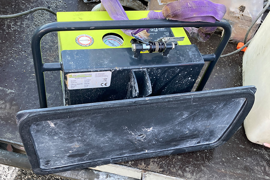 Die Installation der Betonschalen stellte den beauftragten Unternehmer vor besondere Herausforderungen. Um die über 3 Kilometer fast 200 kg schweren Elemente sicher und präzise zu versetzen, musste ein spezielles Vakuumgerät entwickelt und am Bagger montiert werden. Dieses massgeschneiderte Gerät ermöglichte eine effiziente und sichere Installation der Betonschalen, selbst unter erschwerten Bedingungen.