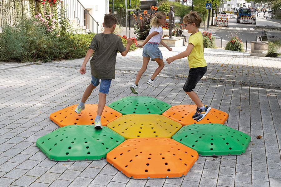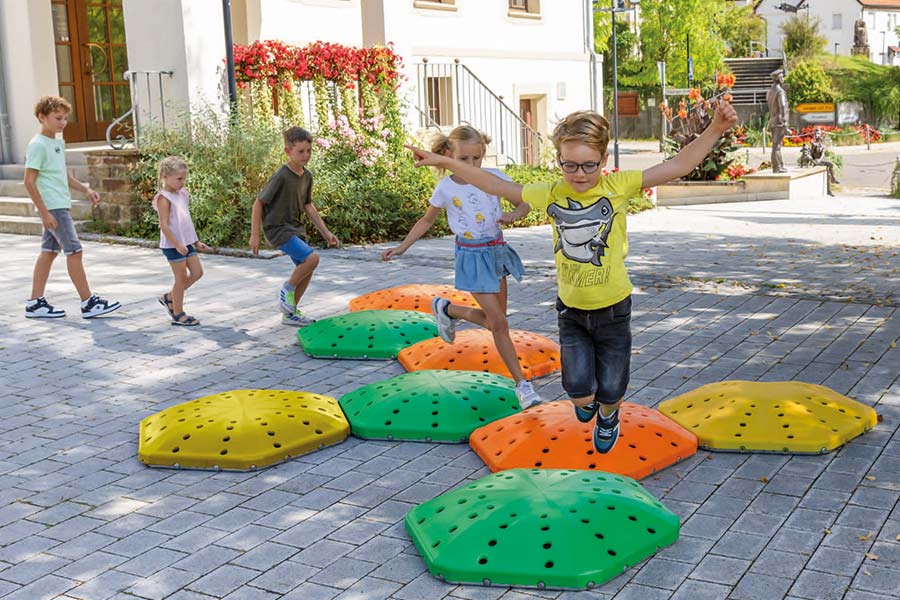 Dieses innovative Hüpfkissen ermöglicht sanftes Hüpfen und Schwingen und eignet sich ideal für den Einsatz in Kindertagesstätten, auf Spielplätzen, in Fussgängerzonen oder auf Marktplätzen.