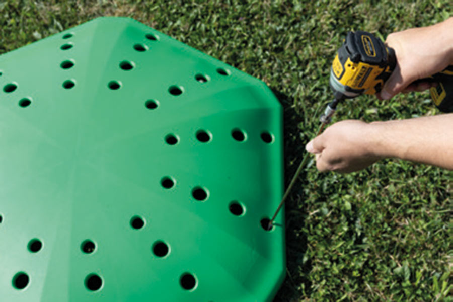 Der Aufbau ist sehr einfach, erfordert nur minimale Bodenarbeiten und kann auf unterschiedlichsten Untergründen wie Pflastersteinen oder Betonböden installiert werden. Dank der randlosen Hüpffläche wird der verfügbare Platz optimal genutzt, und die Möglichkeit zur Kombination mehrerer Module eröffnet vielfältige Anordnungsmöglichkeiten. Für nicht versiegelte Flächen wie Rasen steht optional ein Fundament zur Verfügung.