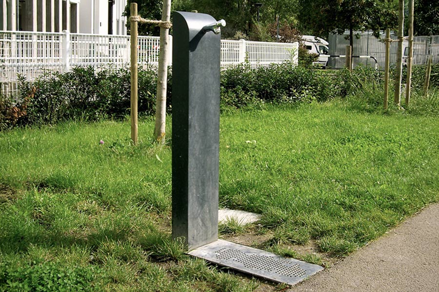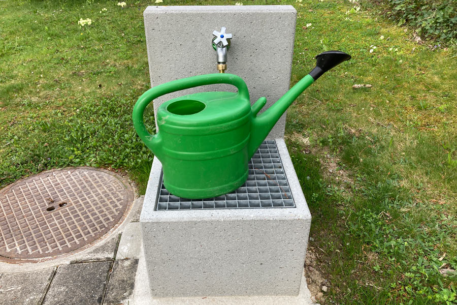 Ein aktuelles Beispiel können wir Ihnen auf dem Friedhof der Stadt Schlieren präsentieren: Mehrere Wasserzapfstellen wurden auf dem Areal installiert. Mit praktischem Gitterrost zur einfachen und schnellen Reinigung und einem zweiten Wasserhahn auf der Rückseite der Zapfstelle, um zusätzlich einen Schlauch anschliessen zu können.