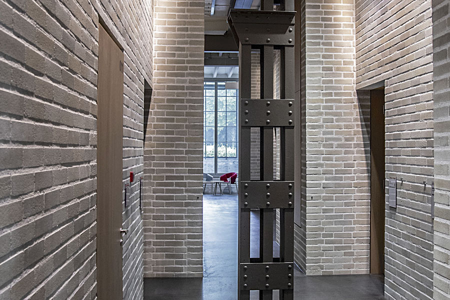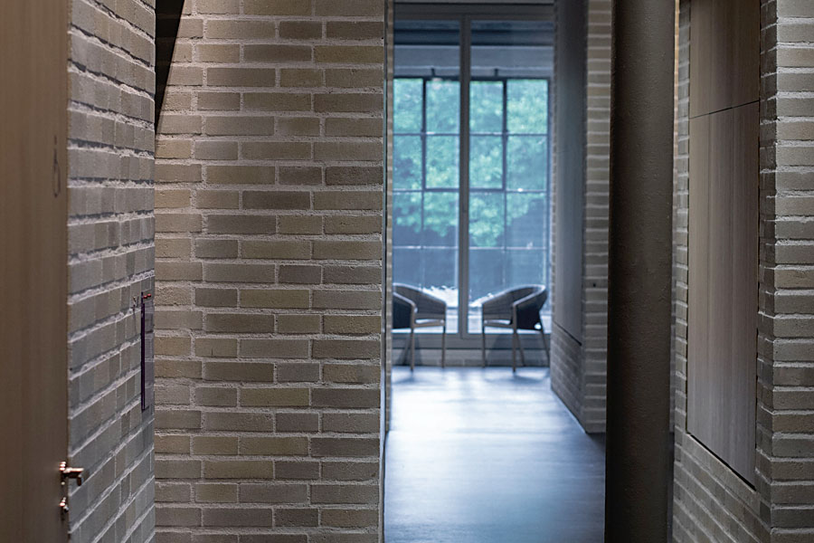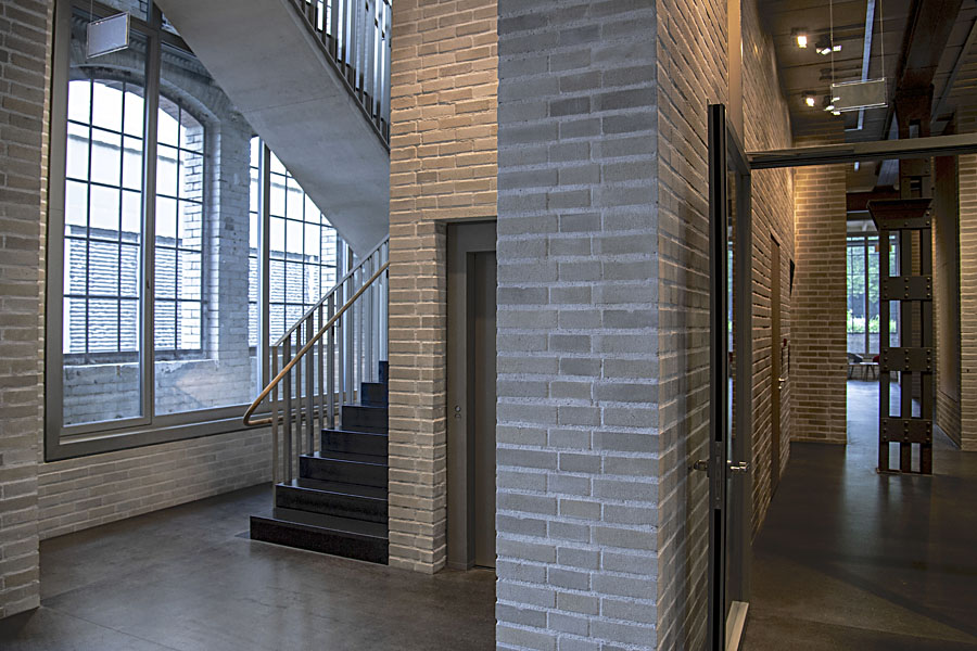 Er sieht aus wie ein normaler Ziegelstein aus Ton, ist aber aus Beton. Speziell daran ist, dass dieser Sichtzementstein in Farbnuancen von fünf Farbtönen ausgeliefert und vor Ort in zufälliger Abfolge vermauert werden. So entstand dieser besondere Effekt der Grau-Färbung mit Beige-Nuancen. Um das noch besser zur Geltung zu bringen, wurde ein sehr heller, fast weisser Mörtel verwendet. Der Zementstein wurde zusammen mit den verantwortlichen Architekten eigens für das Umnutzungsprojekt Musikhaus PH Bern entwickelt und erfolgreich eingesetzt. Ziel dabei war es, mit dem Sichtmauerwerk den Zeitgeist des Industriezeitalters einzufangen und es gleichzeitig mit den historischen Aussenwänden in Einklang zu bringen. Für Bauherren ist diese technologische Entwicklung eine Alternative zu den traditionellen Sichtbacksteinen.