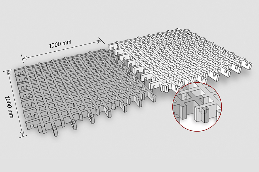 Rasengitter-Fallschutzplatten sind eine bedeutende und kreative Erfindung unter den Fallschutzsystemen. Als begrünbare Alternative zu den herkömmlichen Platten werden sie von den Planern geschätzt. Sie können auch in leicht hügeligen Bereichen eingesetzt und mit Rollstühlen und natürlich auch mit Rasenmähern befahren werden. Die formschlüssigen Verbindungen garantieren ein schnelles Verlegen und eine planliegende, pflegeleichte Fläche.