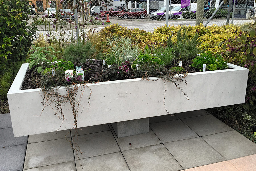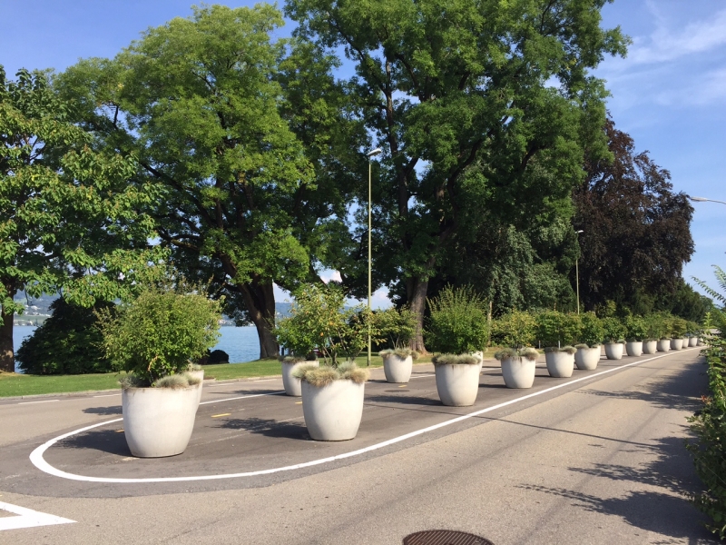 Die Zufahrt zur Fähre Horgen-Meilen wurde mit Pflanztrögen Pot begrünt, aber auch beruhigt. Durch die grosszügigen Tröge entsteht eine grüne Allee. Selbstverständlich können auch nur einzelne Tröge versetzt werden, um einen grünen Akzent zu setzen.
