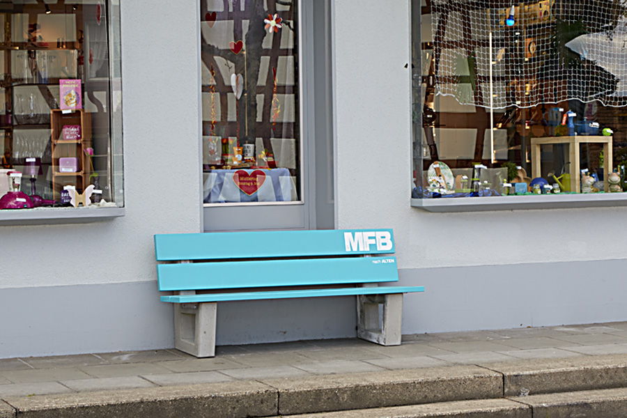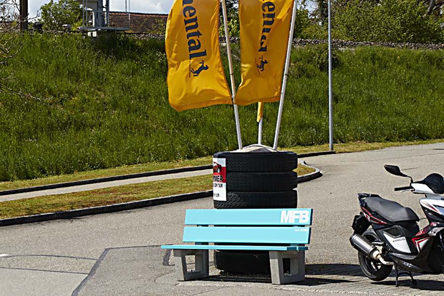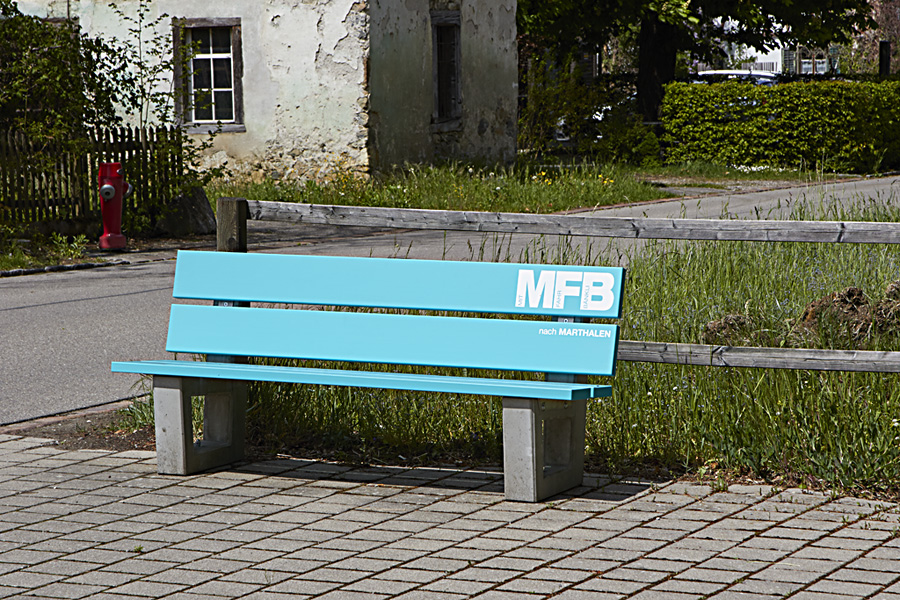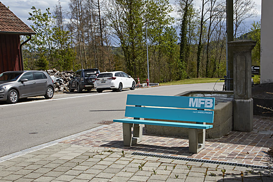 Die vier Bänke vom Typ «Allschwil» wurden durch die Silidur AG geliefert. Bei der Auswahl wurden vor allem die Stabilität, die Langlebigkeit und die Gestaltungsmöglichkeiten hoch gewichtet. Mit der Wahl der Farbe ging es darum, sich farblich modern von den «offiziellen» Bänklis abzusetzen und ihnen einen modernen Touch zu verleihen.