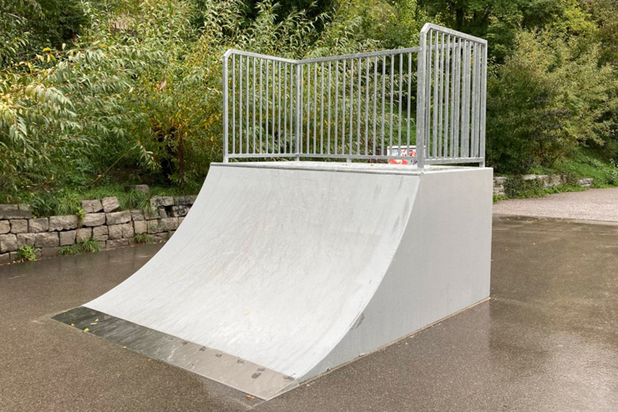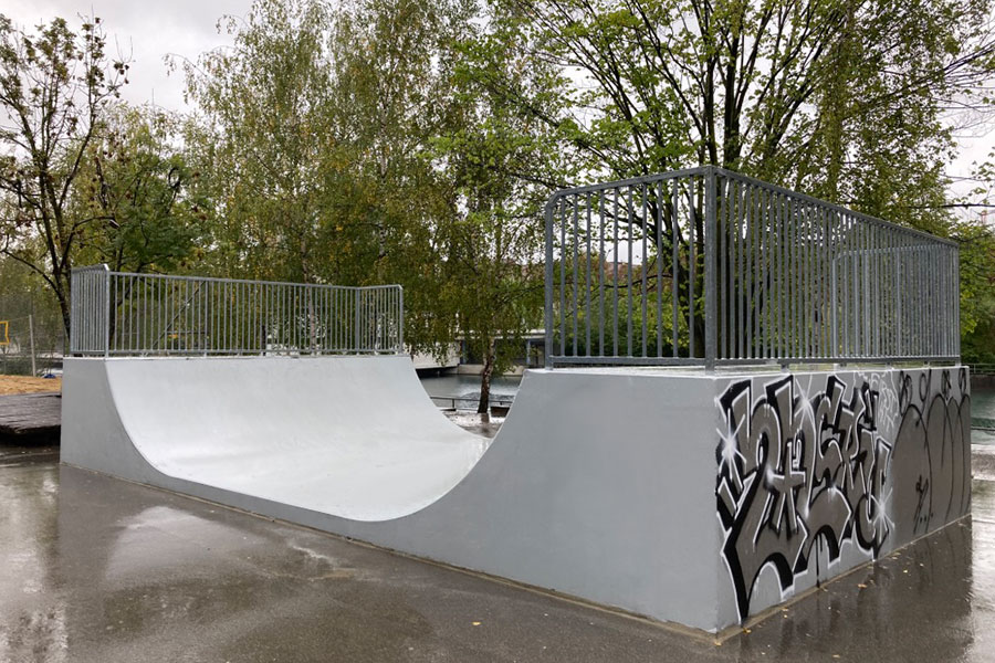 Eine besondere Herausforderung war die Grundierung und die hellgrauen PU-Beschichtung der Betonelemente, welche die Skateanlage extrem witterungsbeständig macht und dem Fahrbelag die nötige Rutschfestigkeit gibt. Dies garantiert der Skateanlage nicht nur eine besondere Langlebigkeit, sondern verleiht auch ein angenehmes Fahrgefühl.