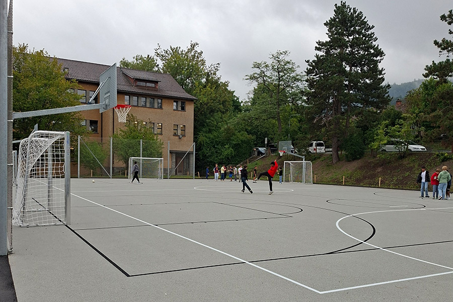 Die gelieferten silisport-Produkte wie der Aluliner, Spielplatztore und die Basketballanlage aus Stahl mit Gitterrost fügten sich nahtlos in das Gesamtkonzept ein. Hinzu kamen noch die City Line Parkbänke. Die mit Hartholzbohlen bestückten Sitzbänke aus feuerverzinktem Stahlrohr passen mit ihrem leicht wirkenden Design perfekt in die Umgebung. Insgesamt überzeugten die Produkte sowohl in der Ausführung als auch durch ihre Qualität.