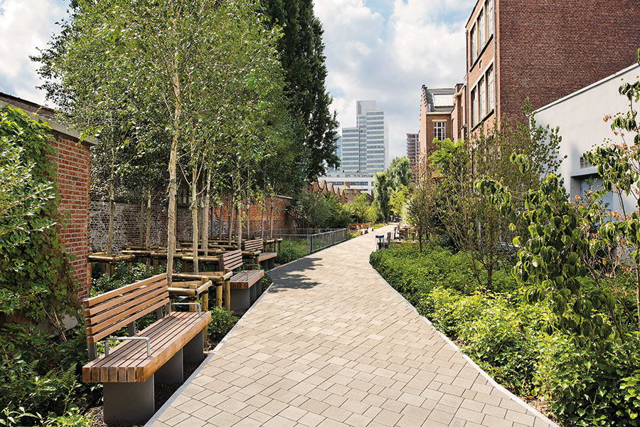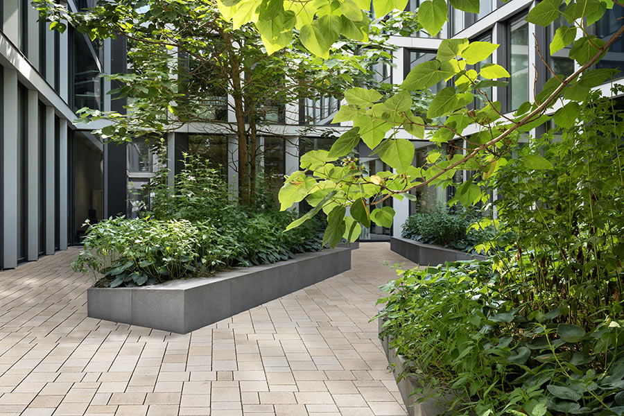 Was daraus entsteht, ist ein ökologisch wirksames Flächenmanagement das zur Entsiegelung beiträgt: Die Pflasterflächen erreichen eine Verdunstungsleistung, die mit natürlichen Wiesen vergleichbar ist – und das mitten im urbanen Raum.